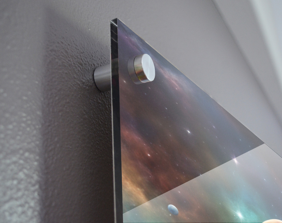 Printed to the edge - Ready to hang - provided with 4 premium polished aluminum stand off ( wall screws and mounting hardware provided )