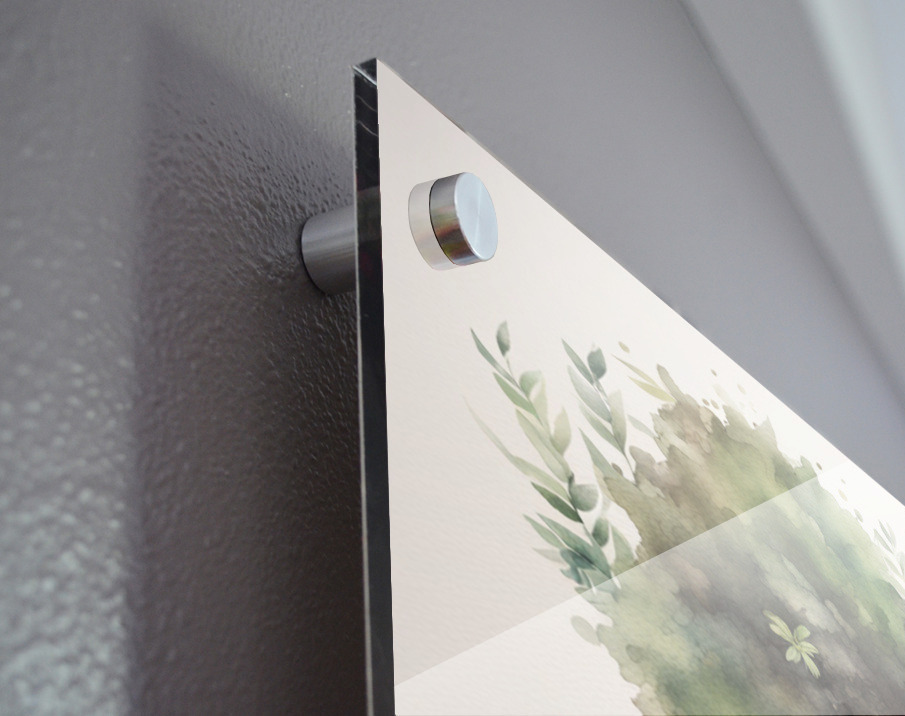 Printed to the edge - Ready to hang - provided with 4 premium polished aluminum stand off ( wall screws and mounting hardware provided )