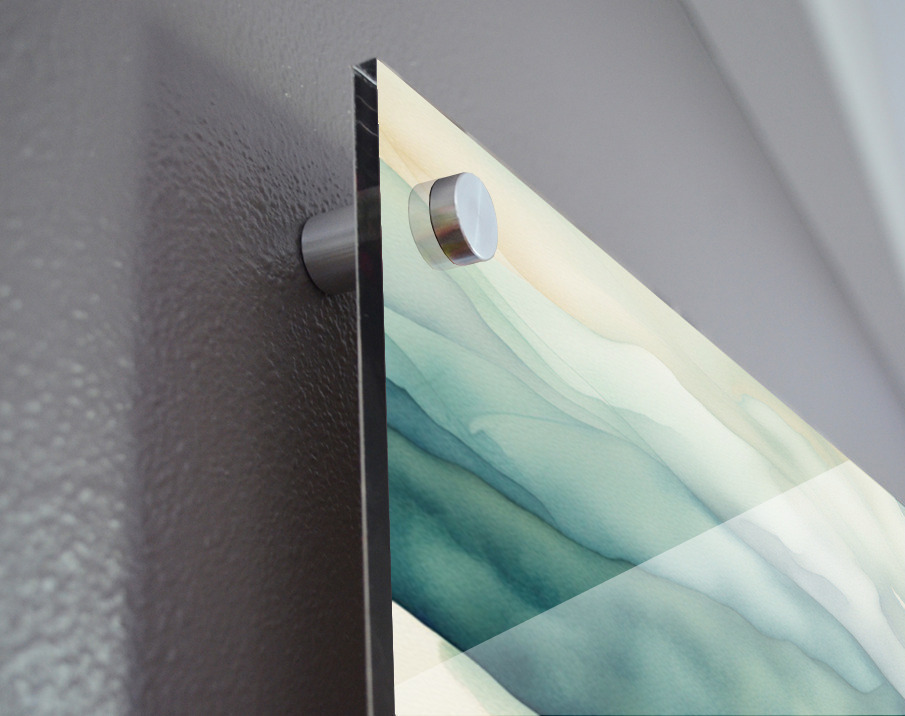 Impression sur acrylique avec entretoises ( cylindres métalliques )