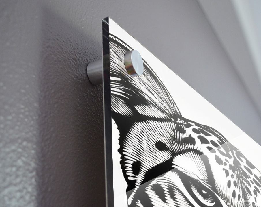 Impression sur acrylique avec entretoises ( cylindres métalliques )