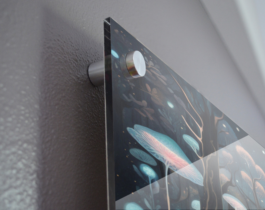 Impression sur acrylique avec entretoises ( cylindres métalliques )