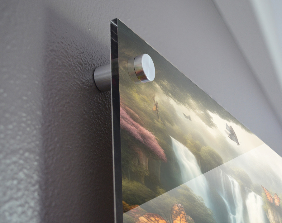 Impression sur acrylique avec entretoises ( cylindres métalliques )
